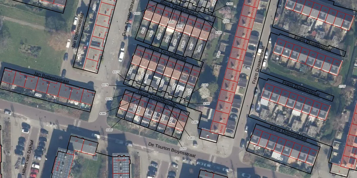 Gebruik de zoekbalk of klik op een perceel om informatie over het perceel te bekijken.