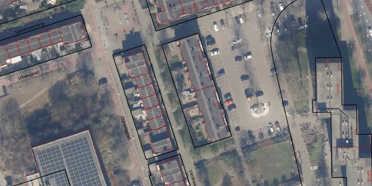 Gebruik de zoekbalk of klik op een perceel om informatie over het perceel te bekijken.