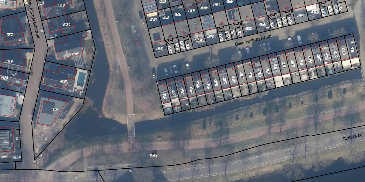 Gebruik de zoekbalk of klik op een perceel om informatie over het perceel te bekijken.