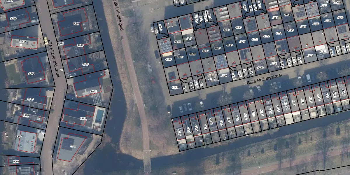 Gebruik de zoekbalk of klik op een perceel om informatie over het perceel te bekijken.