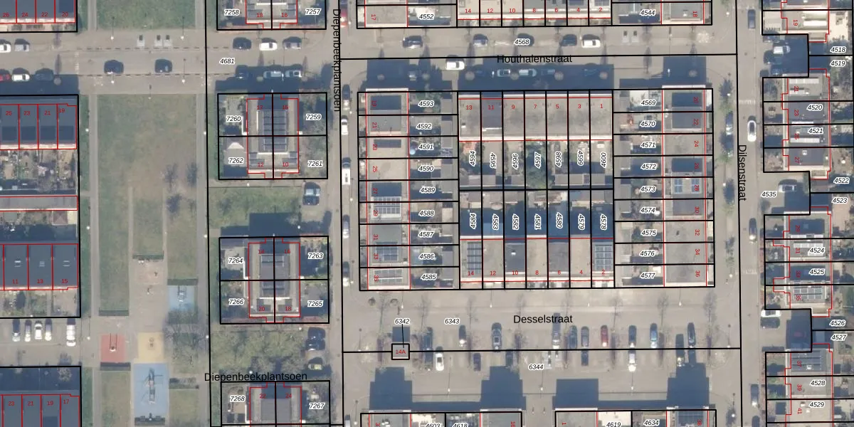 Gebruik de zoekbalk of klik op een perceel om informatie over het perceel te bekijken.