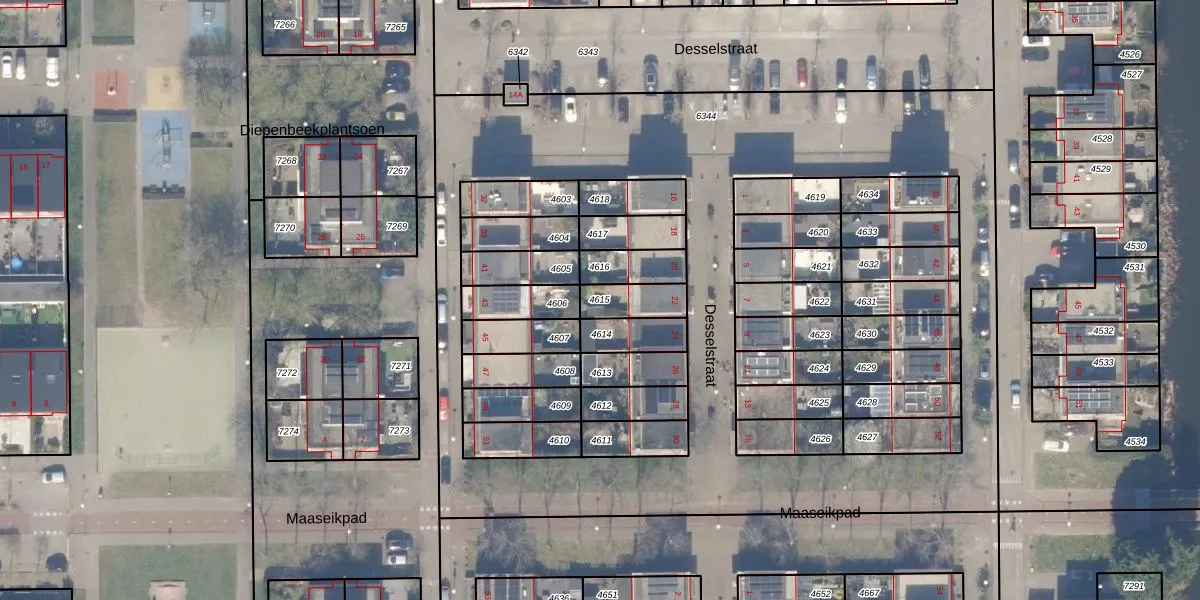 Gebruik de zoekbalk of klik op een perceel om informatie over het perceel te bekijken.