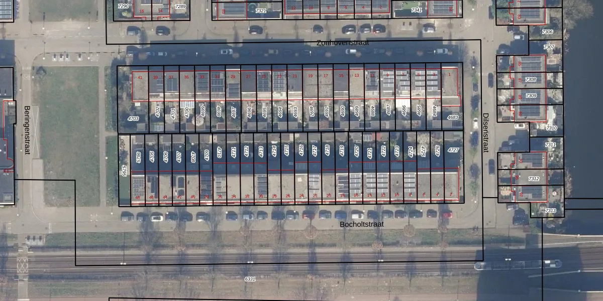 Gebruik de zoekbalk of klik op een perceel om informatie over het perceel te bekijken.
