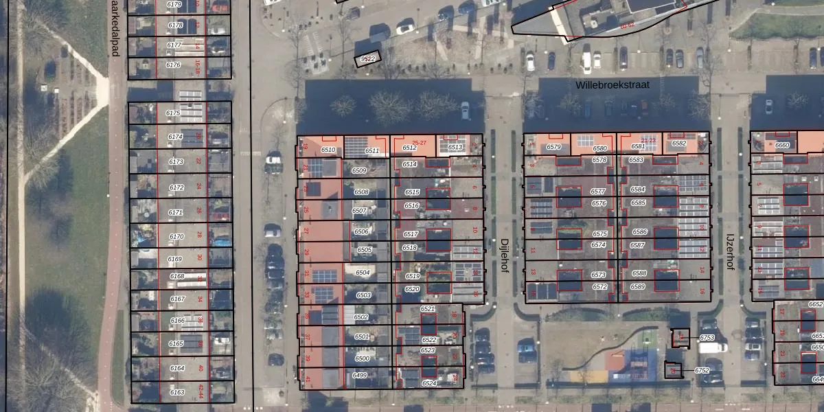 Gebruik de zoekbalk of klik op een perceel om informatie over het perceel te bekijken.