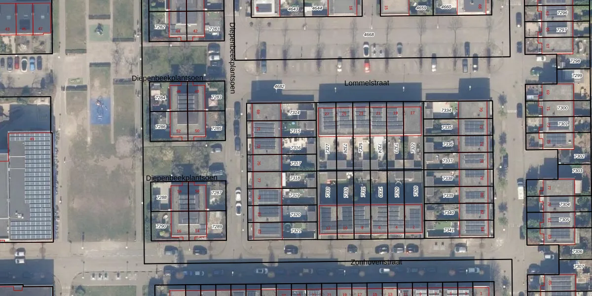 Gebruik de zoekbalk of klik op een perceel om informatie over het perceel te bekijken.