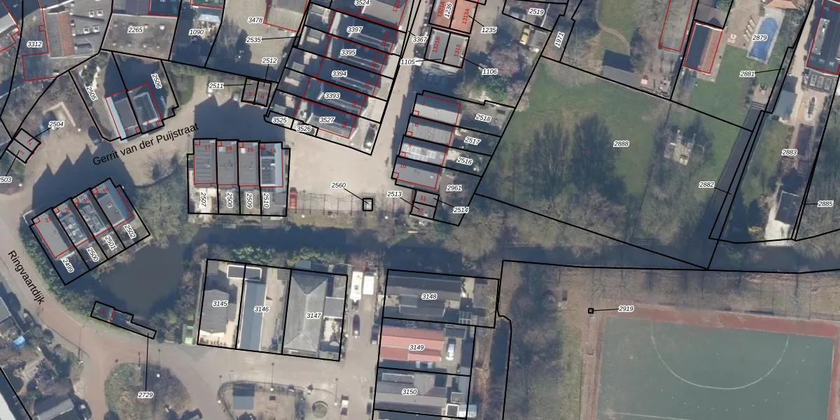 Gebruik de zoekbalk of klik op een perceel om informatie over het perceel te bekijken.