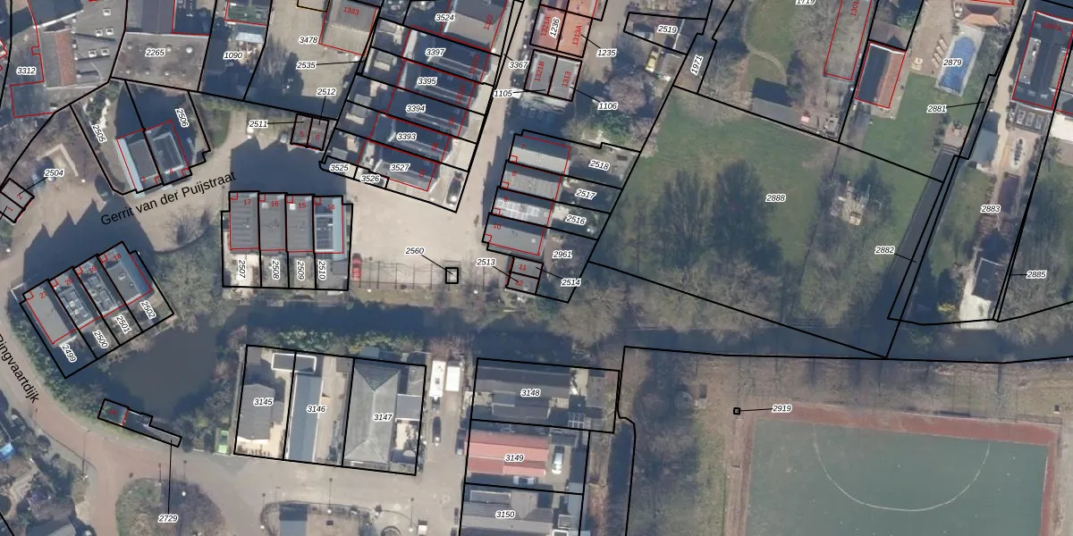 Gebruik de zoekbalk of klik op een perceel om informatie over het perceel te bekijken.