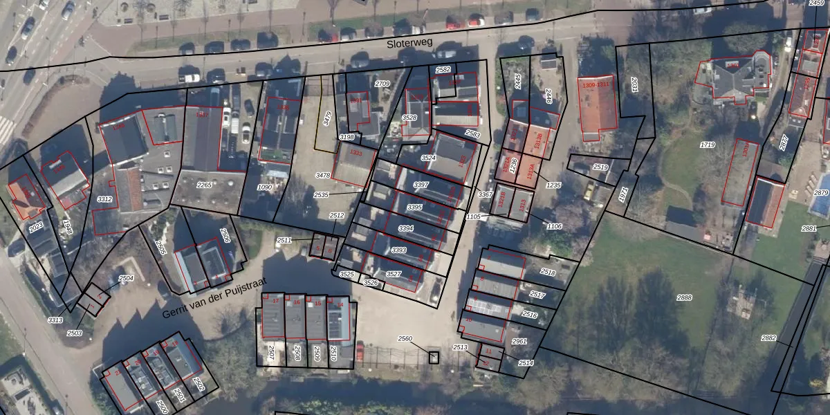 Gebruik de zoekbalk of klik op een perceel om informatie over het perceel te bekijken.