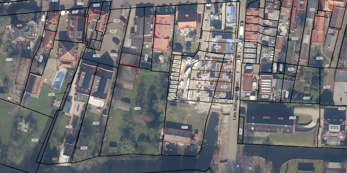 Gebruik de zoekbalk of klik op een perceel om informatie over het perceel te bekijken.