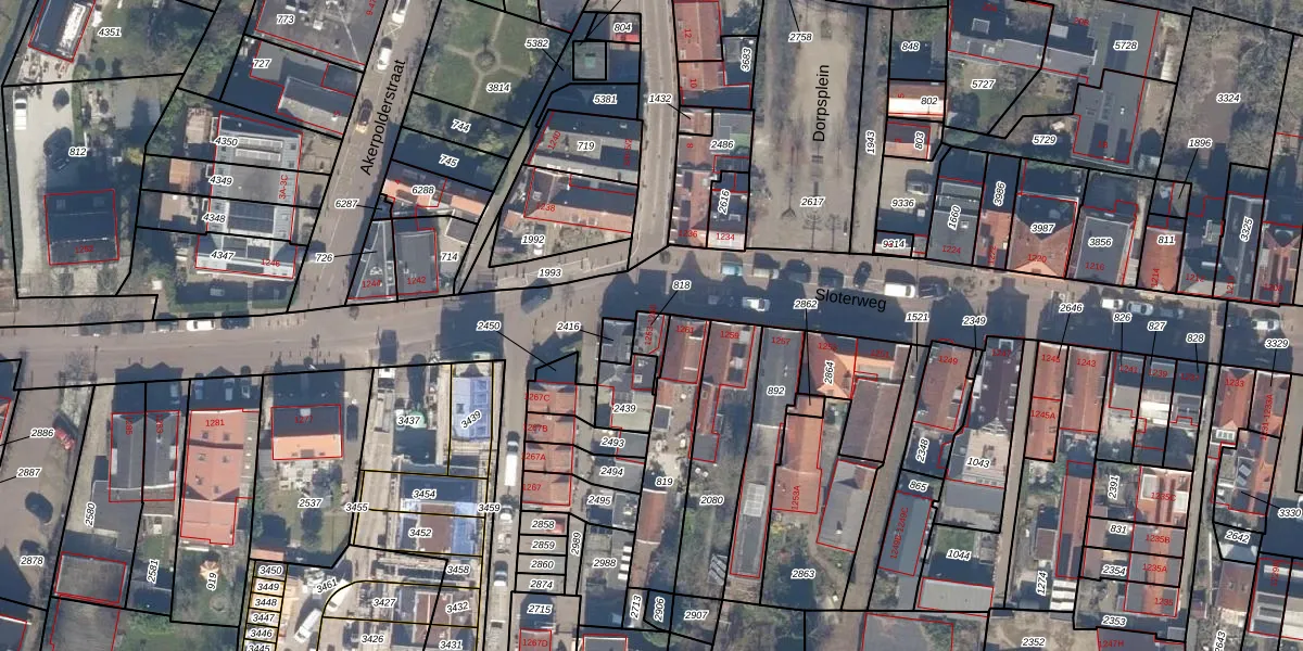 Gebruik de zoekbalk of klik op een perceel om informatie over het perceel te bekijken.