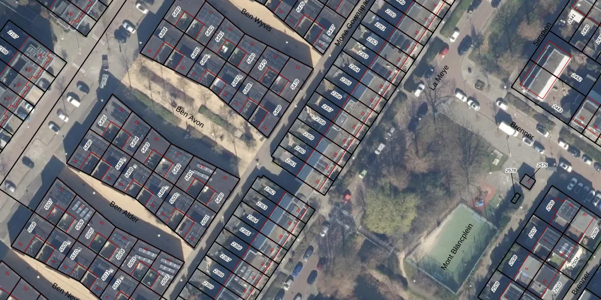 Gebruik de zoekbalk of klik op een perceel om informatie over het perceel te bekijken.