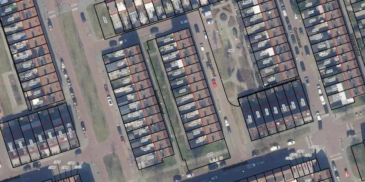 Gebruik de zoekbalk of klik op een perceel om informatie over het perceel te bekijken.