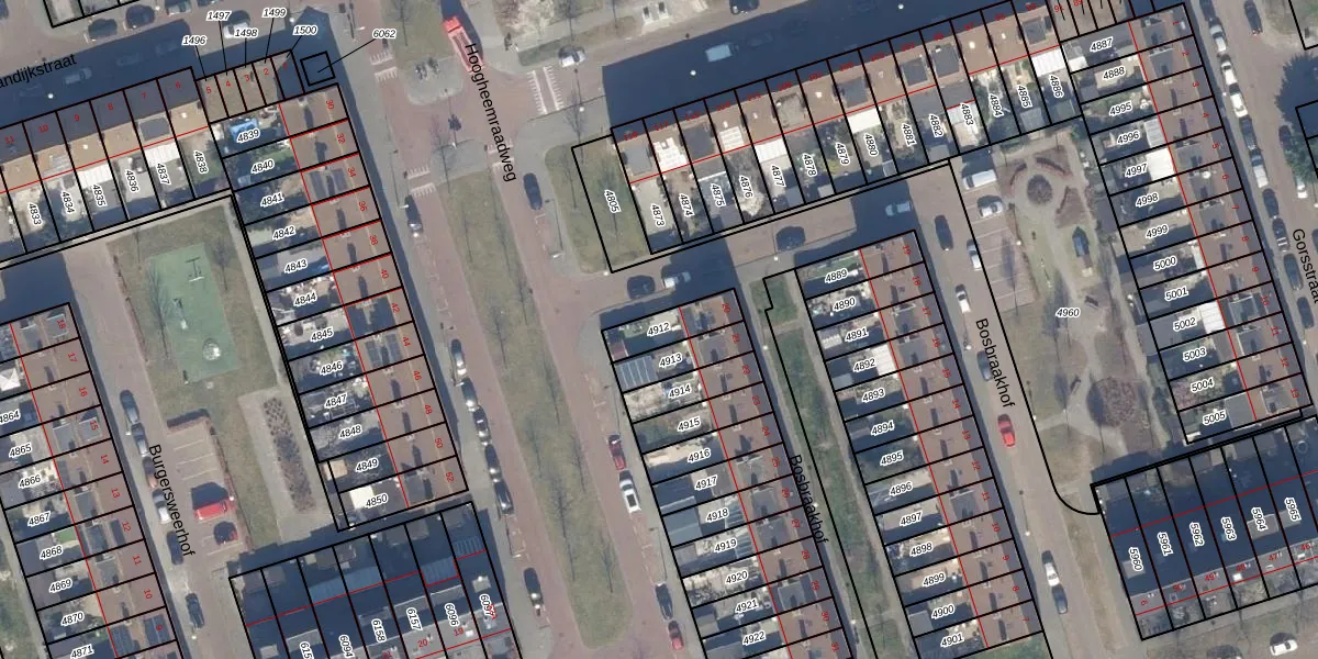 Gebruik de zoekbalk of klik op een perceel om informatie over het perceel te bekijken.