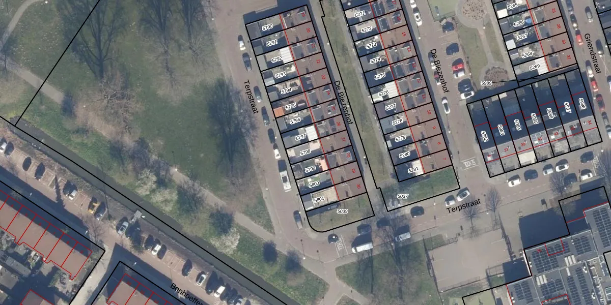 Gebruik de zoekbalk of klik op een perceel om informatie over het perceel te bekijken.