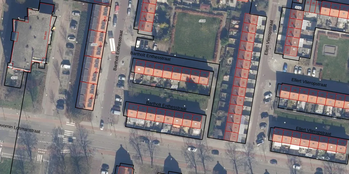 Gebruik de zoekbalk of klik op een perceel om informatie over het perceel te bekijken.