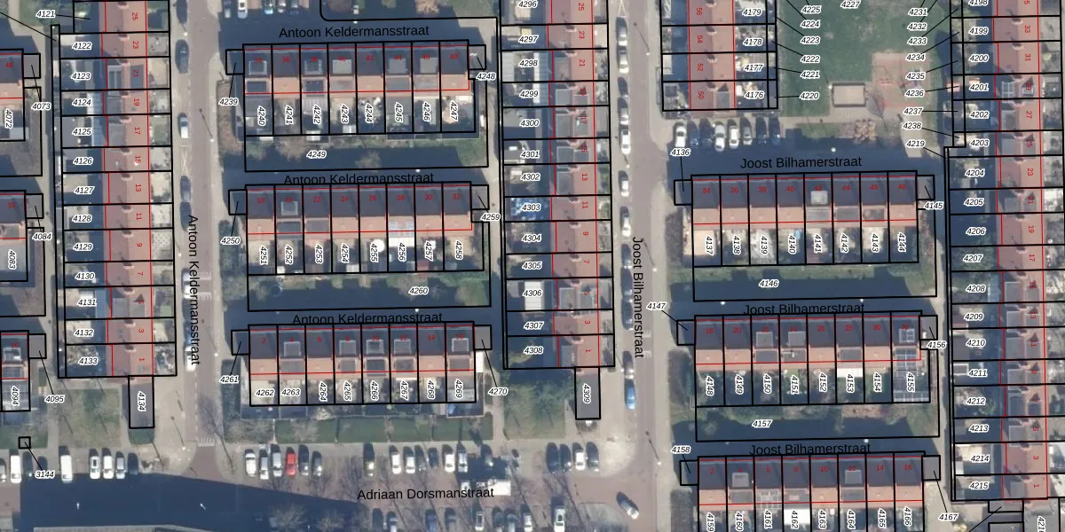 Gebruik de zoekbalk of klik op een perceel om informatie over het perceel te bekijken.