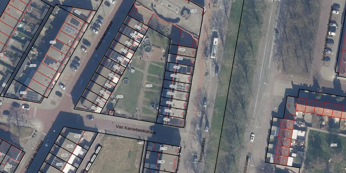 Gebruik de zoekbalk of klik op een perceel om informatie over het perceel te bekijken.