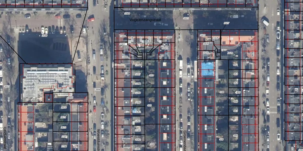Gebruik de zoekbalk of klik op een perceel om informatie over het perceel te bekijken.