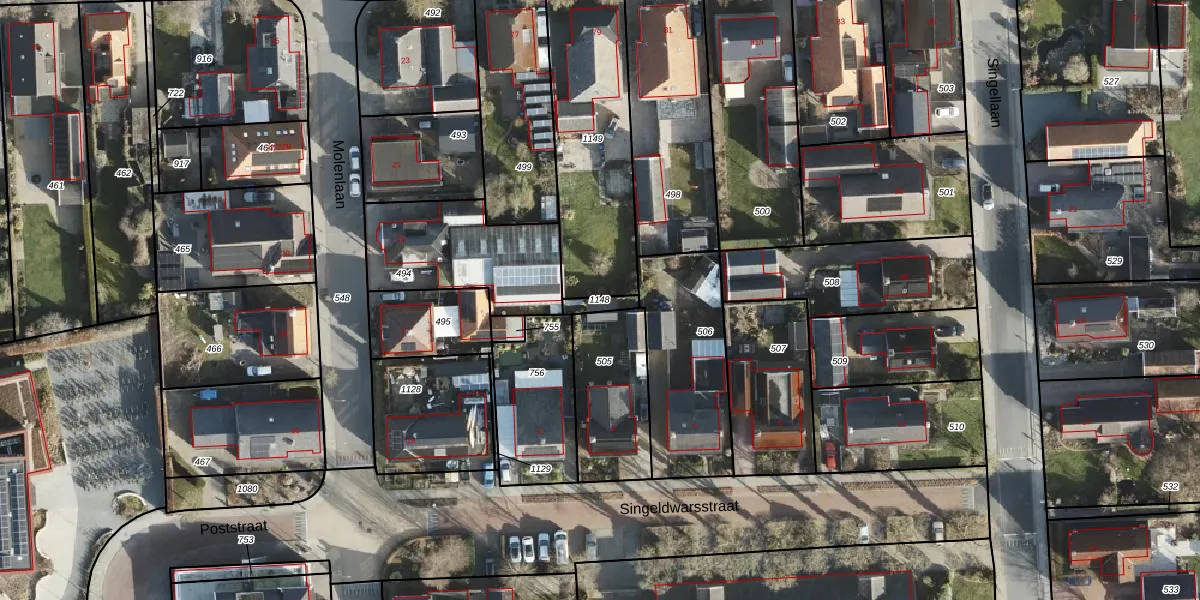 Gebruik de zoekbalk of klik op een perceel om informatie over het perceel te bekijken.