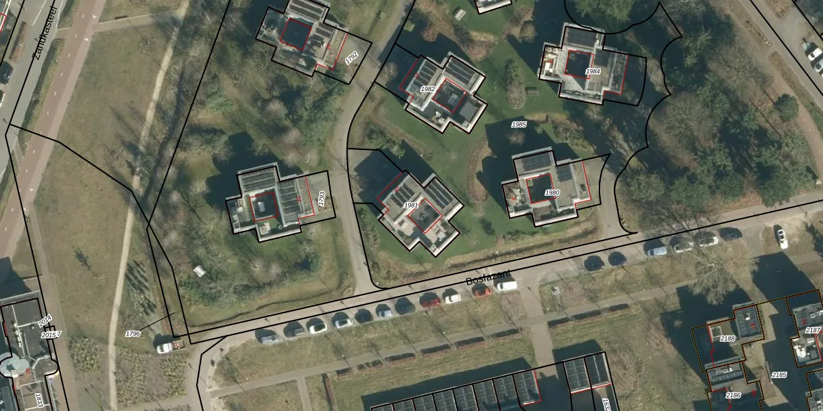 Gebruik de zoekbalk of klik op een perceel om informatie over het perceel te bekijken.