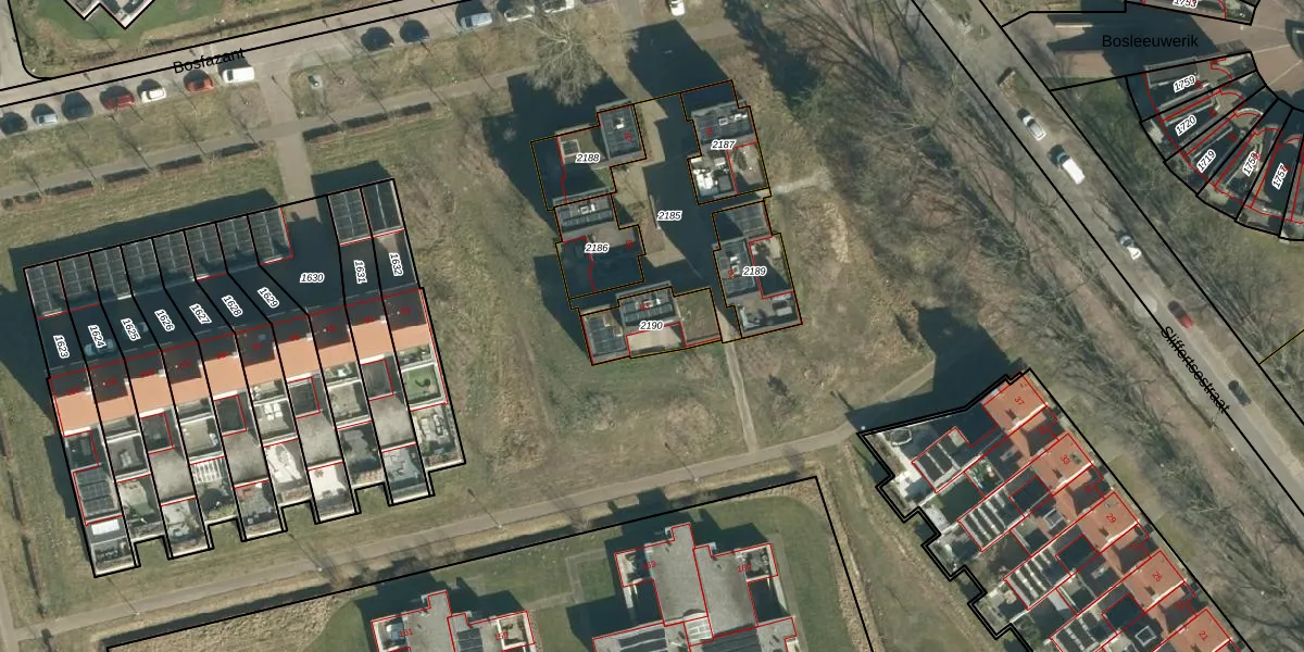 Gebruik de zoekbalk of klik op een perceel om informatie over het perceel te bekijken.