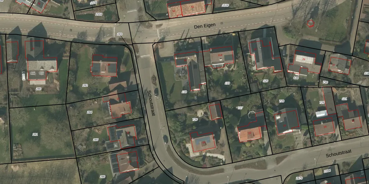 Gebruik de zoekbalk of klik op een perceel om informatie over het perceel te bekijken.