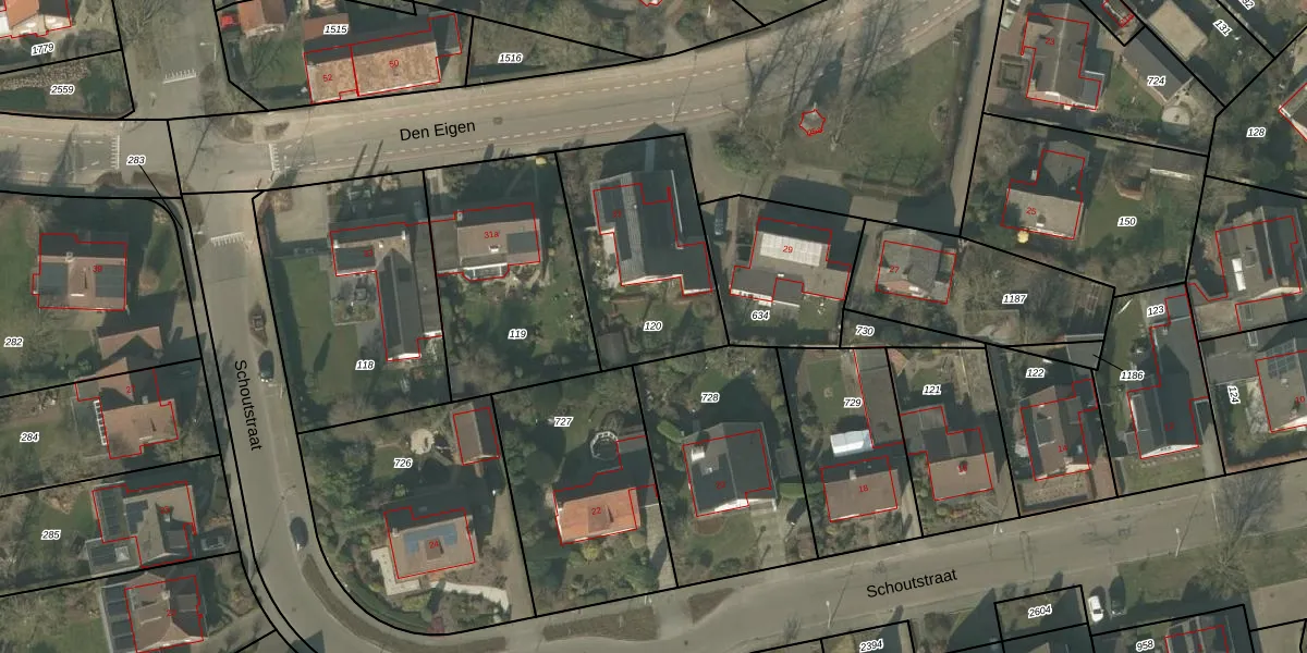 Gebruik de zoekbalk of klik op een perceel om informatie over het perceel te bekijken.