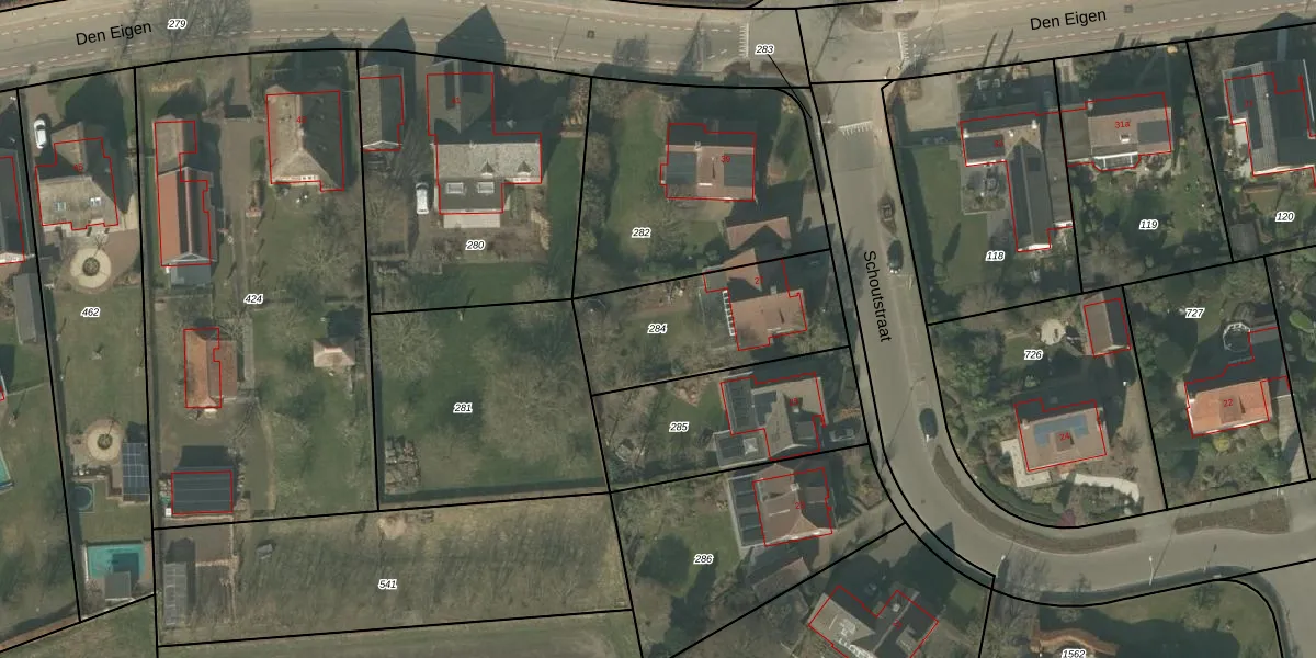 Gebruik de zoekbalk of klik op een perceel om informatie over het perceel te bekijken.