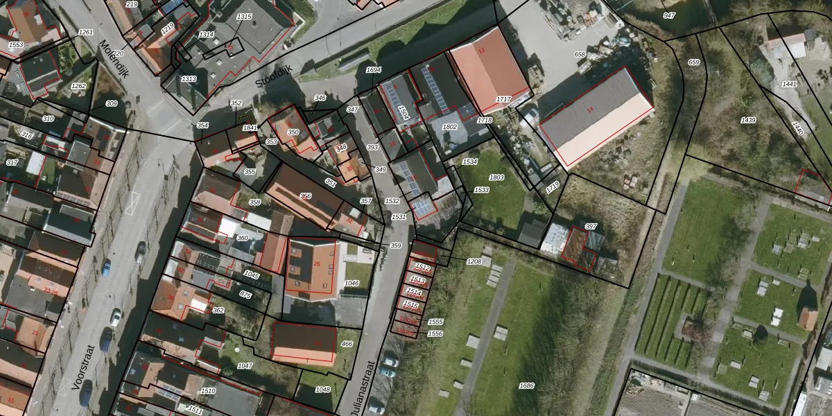 Gebruik de zoekbalk of klik op een perceel om informatie over het perceel te bekijken.