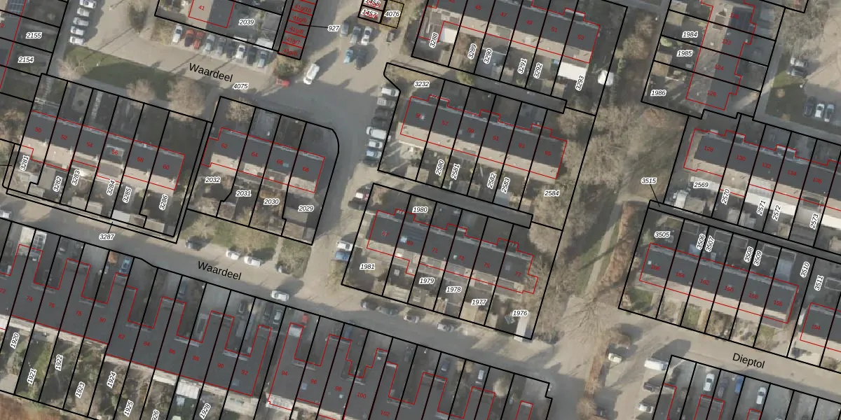 Gebruik de zoekbalk of klik op een perceel om informatie over het perceel te bekijken.