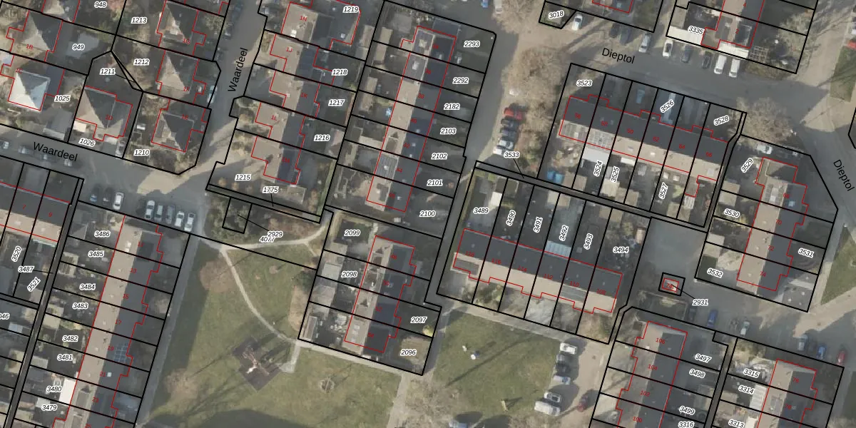 Gebruik de zoekbalk of klik op een perceel om informatie over het perceel te bekijken.