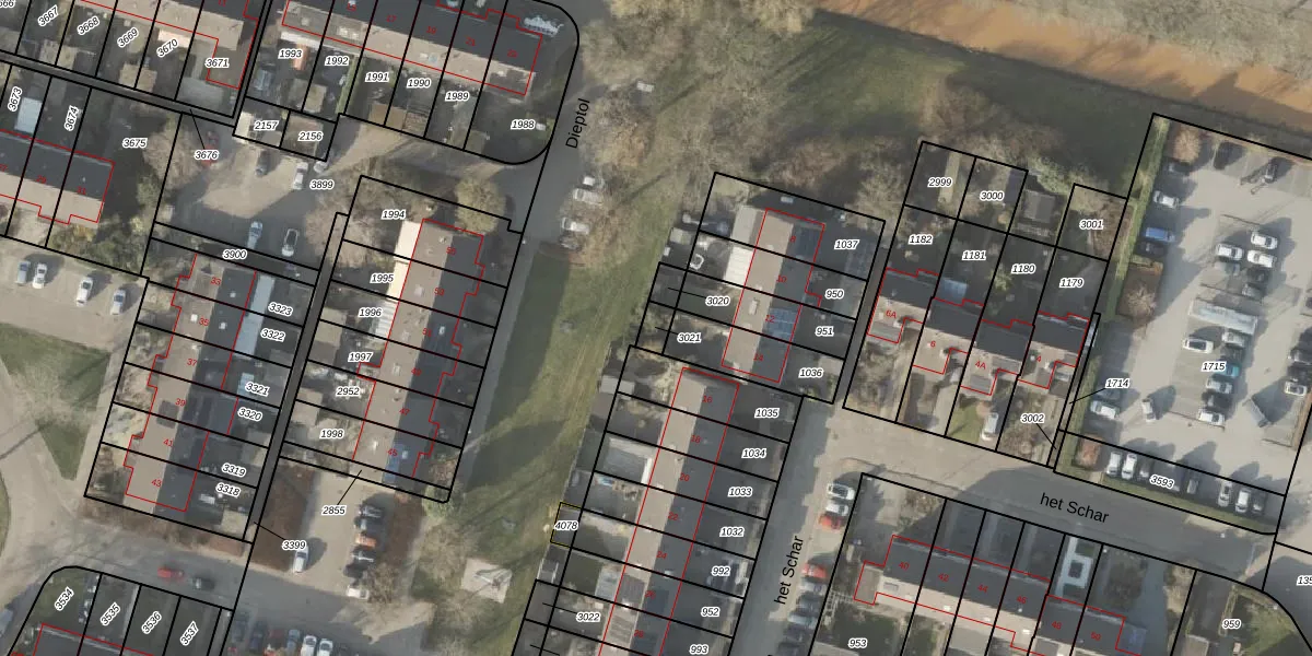 Gebruik de zoekbalk of klik op een perceel om informatie over het perceel te bekijken.