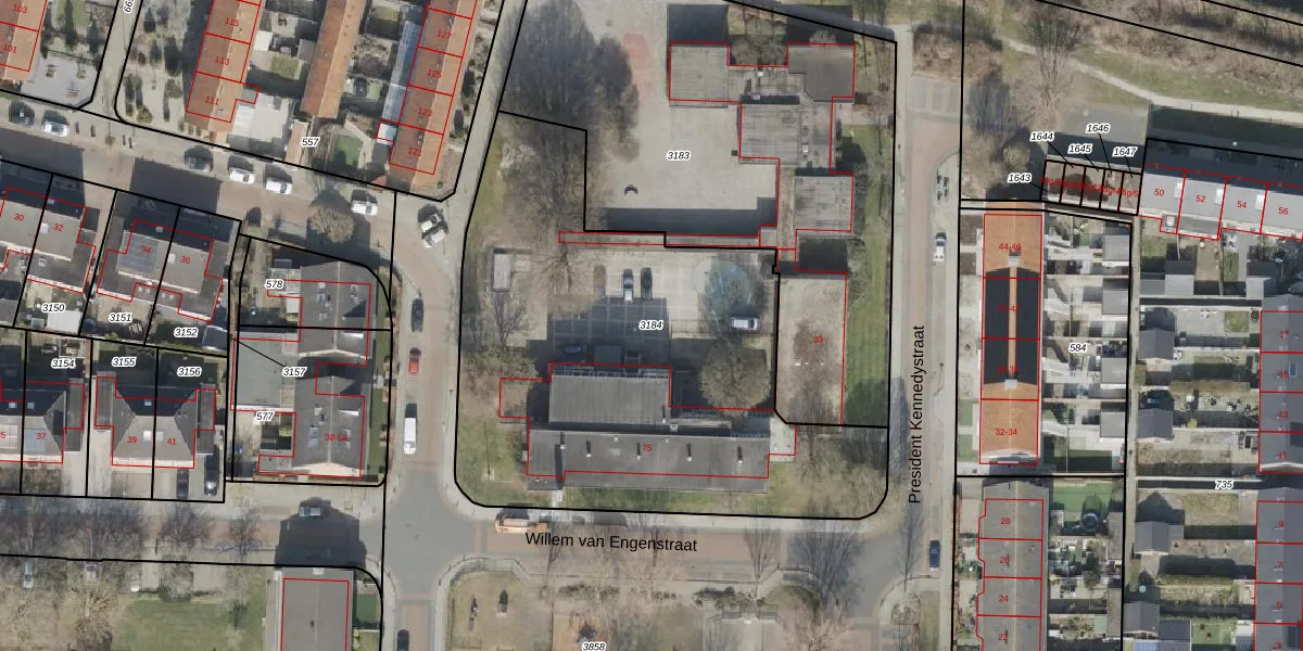 Gebruik de zoekbalk of klik op een perceel om informatie over het perceel te bekijken.