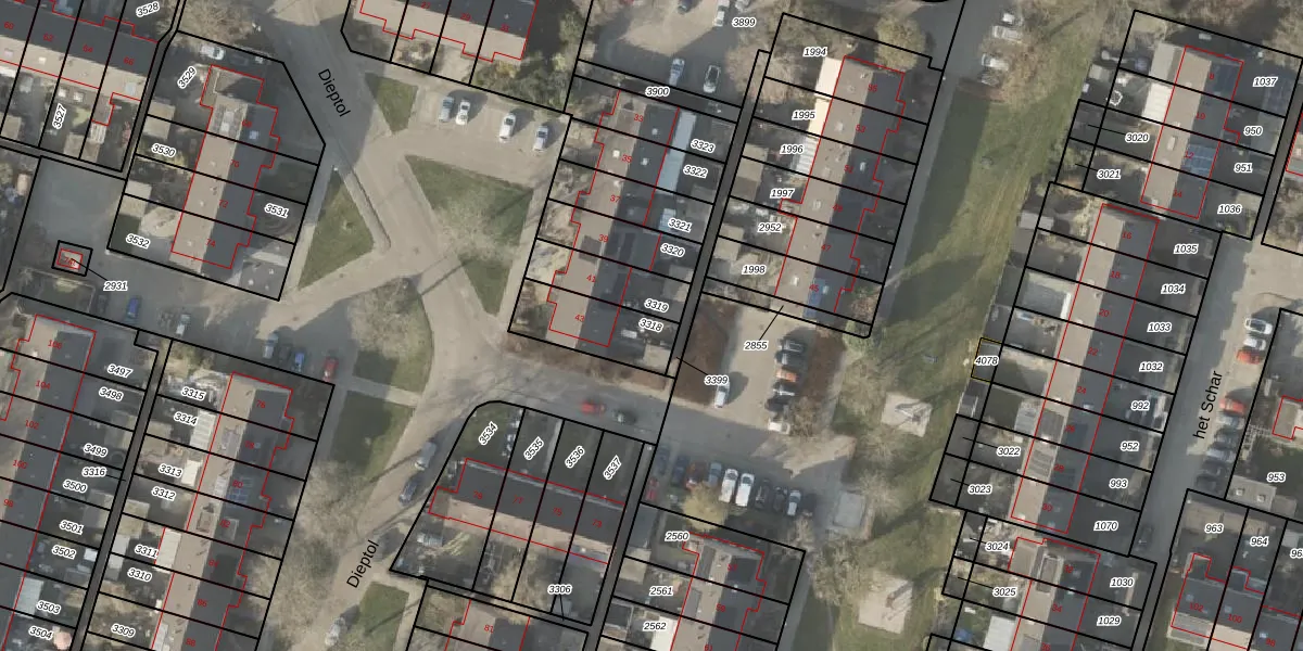 Gebruik de zoekbalk of klik op een perceel om informatie over het perceel te bekijken.