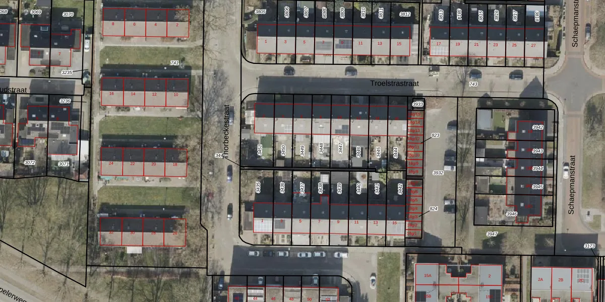 Gebruik de zoekbalk of klik op een perceel om informatie over het perceel te bekijken.