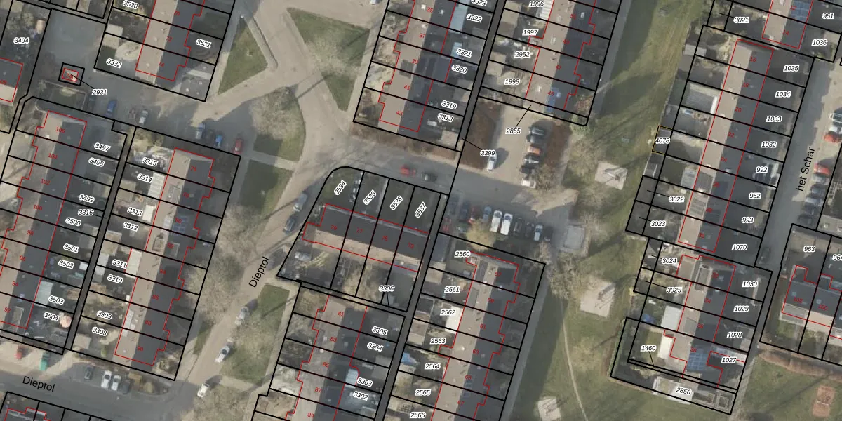 Gebruik de zoekbalk of klik op een perceel om informatie over het perceel te bekijken.