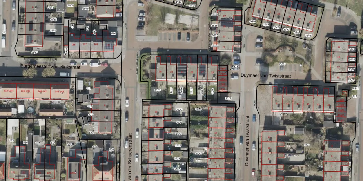 Gebruik de zoekbalk of klik op een perceel om informatie over het perceel te bekijken.
