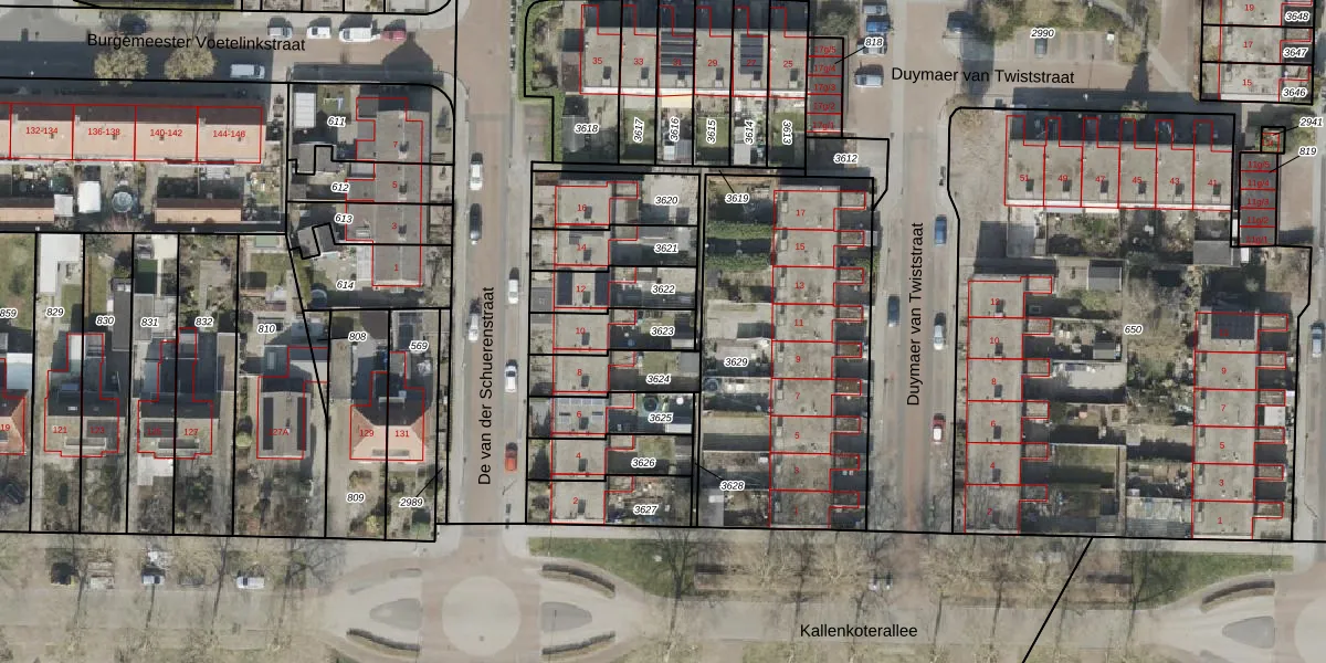 Gebruik de zoekbalk of klik op een perceel om informatie over het perceel te bekijken.