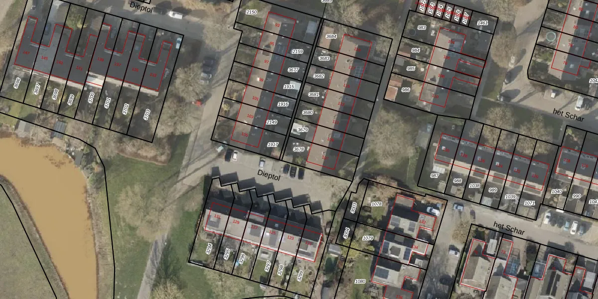 Gebruik de zoekbalk of klik op een perceel om informatie over het perceel te bekijken.