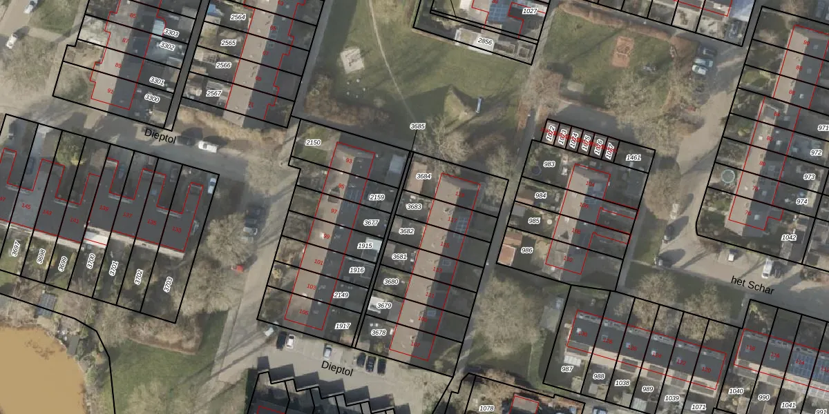 Gebruik de zoekbalk of klik op een perceel om informatie over het perceel te bekijken.