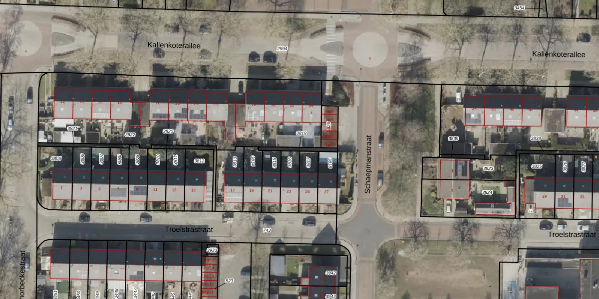 Gebruik de zoekbalk of klik op een perceel om informatie over het perceel te bekijken.