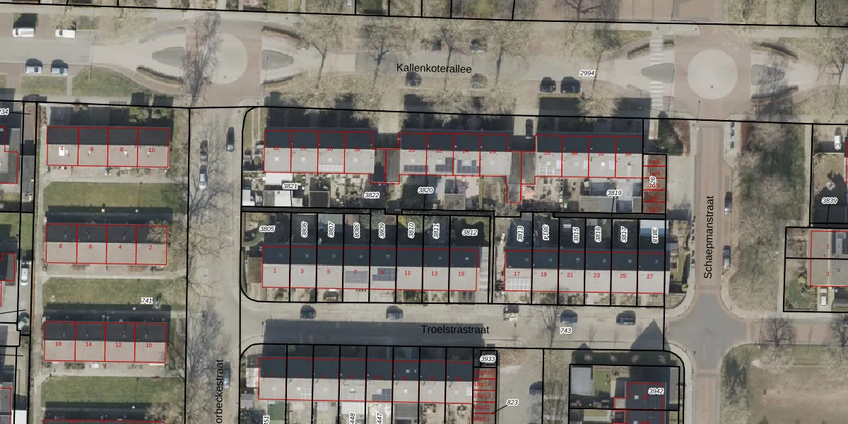 Gebruik de zoekbalk of klik op een perceel om informatie over het perceel te bekijken.