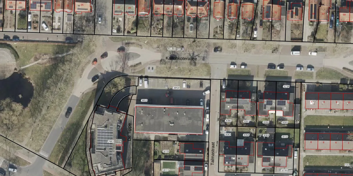 Gebruik de zoekbalk of klik op een perceel om informatie over het perceel te bekijken.