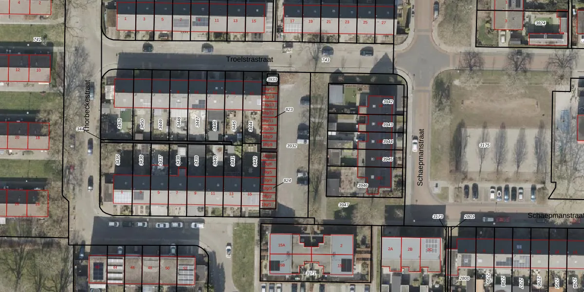 Gebruik de zoekbalk of klik op een perceel om informatie over het perceel te bekijken.