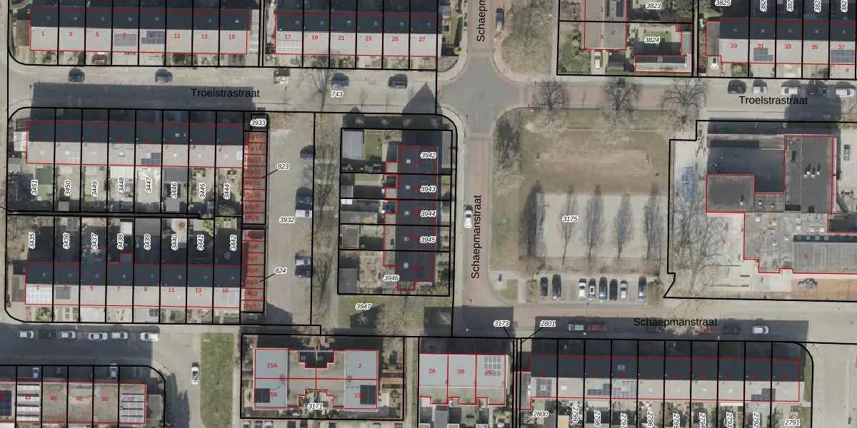 Gebruik de zoekbalk of klik op een perceel om informatie over het perceel te bekijken.