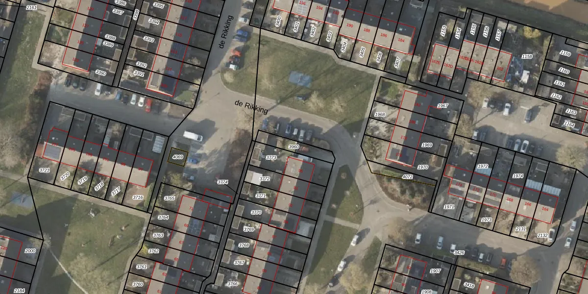 Gebruik de zoekbalk of klik op een perceel om informatie over het perceel te bekijken.