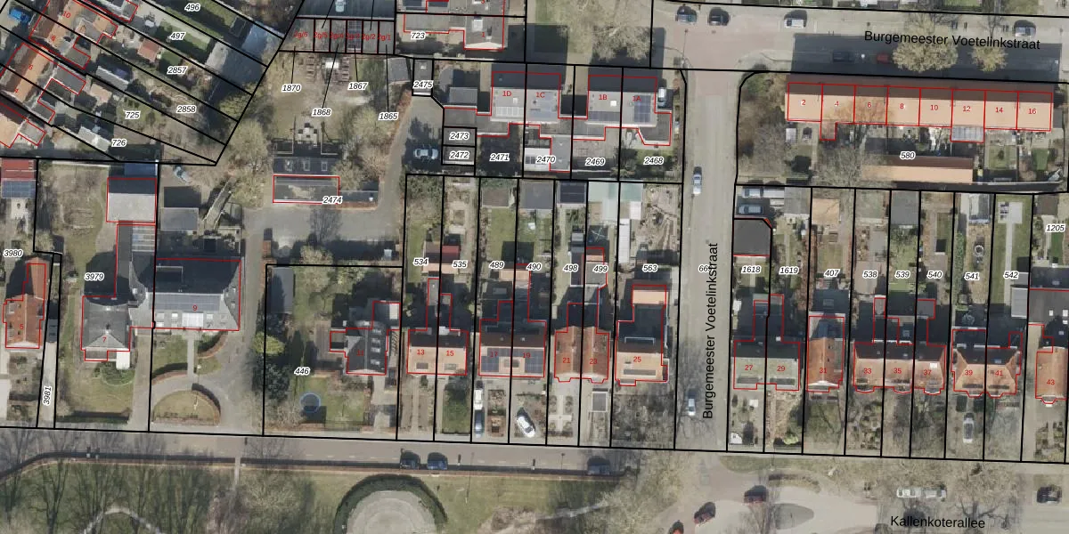 Gebruik de zoekbalk of klik op een perceel om informatie over het perceel te bekijken.