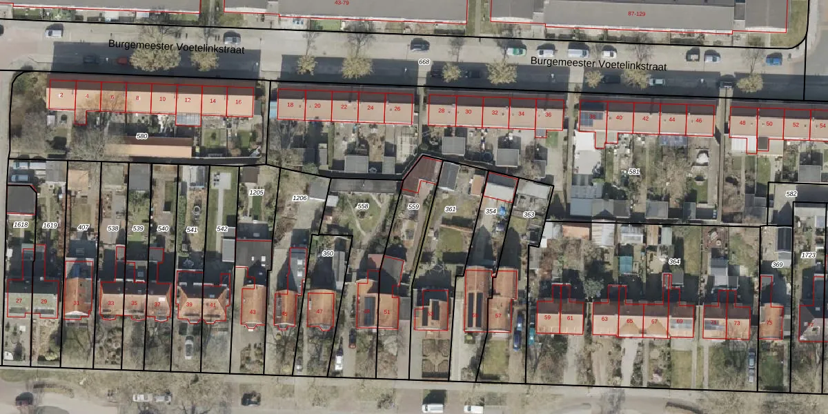 Gebruik de zoekbalk of klik op een perceel om informatie over het perceel te bekijken.