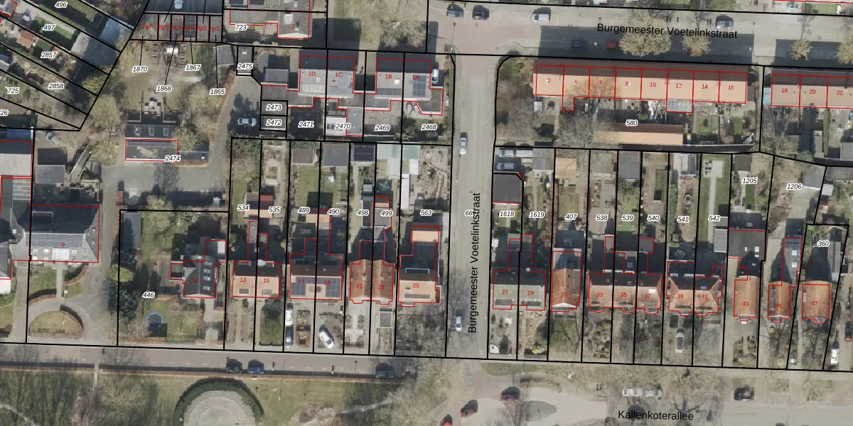 Gebruik de zoekbalk of klik op een perceel om informatie over het perceel te bekijken.