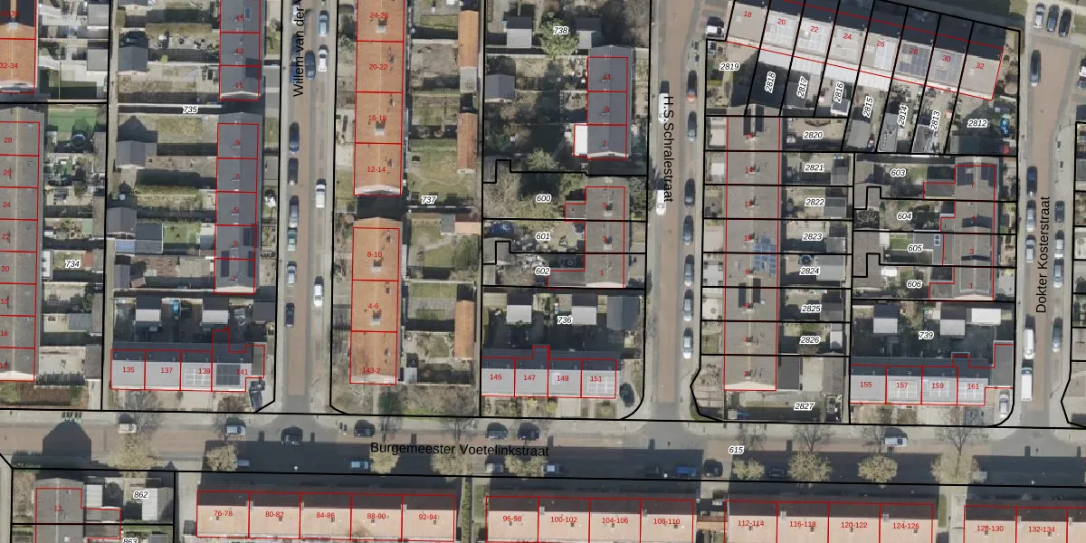 Gebruik de zoekbalk of klik op een perceel om informatie over het perceel te bekijken.